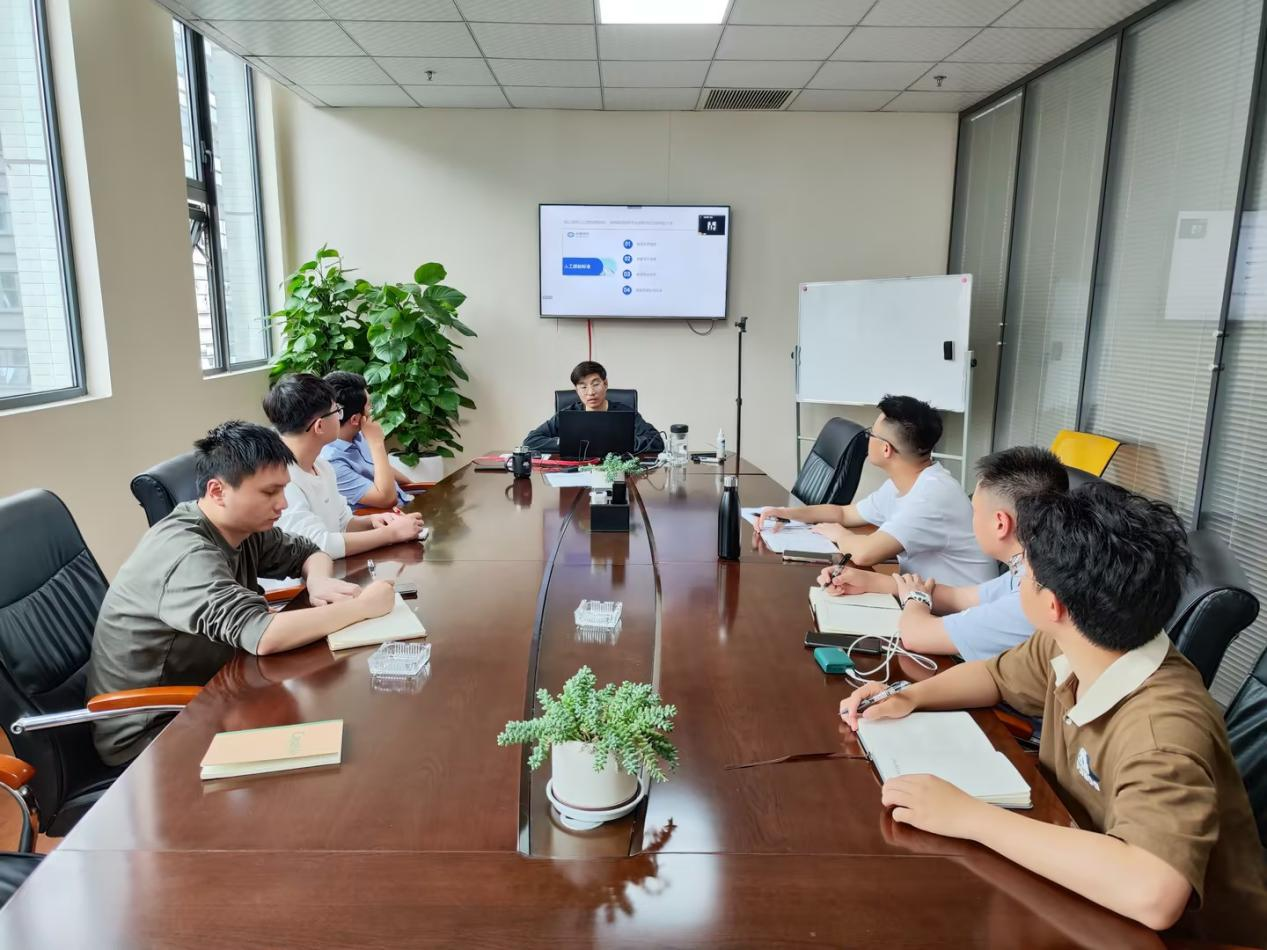 图为综合能源部在公司会议室开展户用光伏踏勘培训,部门副经理但著(中)正在主讲相关理论知识。